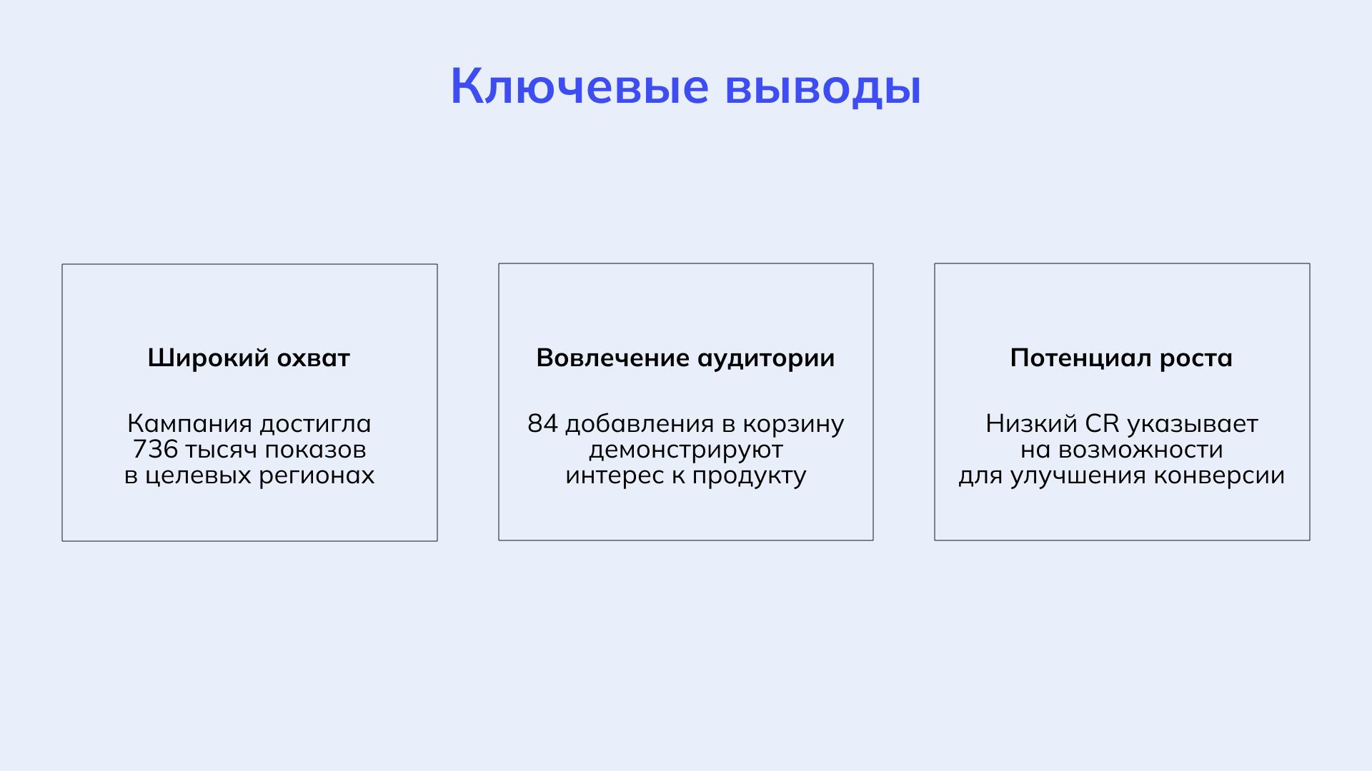 Несмотря на средний CTR и конверсию, данные показывают устойчивый интерес покупателей и значительный потенциал для дальнейшего роста.