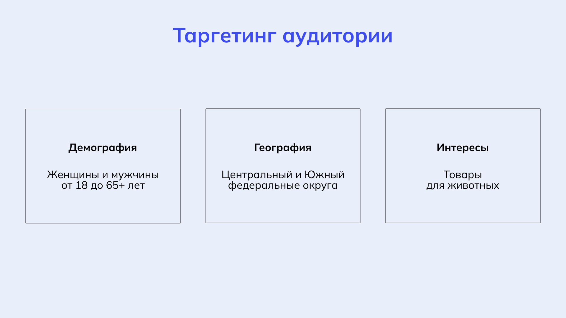 Для решения поставленных задач была запущена рекламная кампания на Wildberries с таким таргетингом: