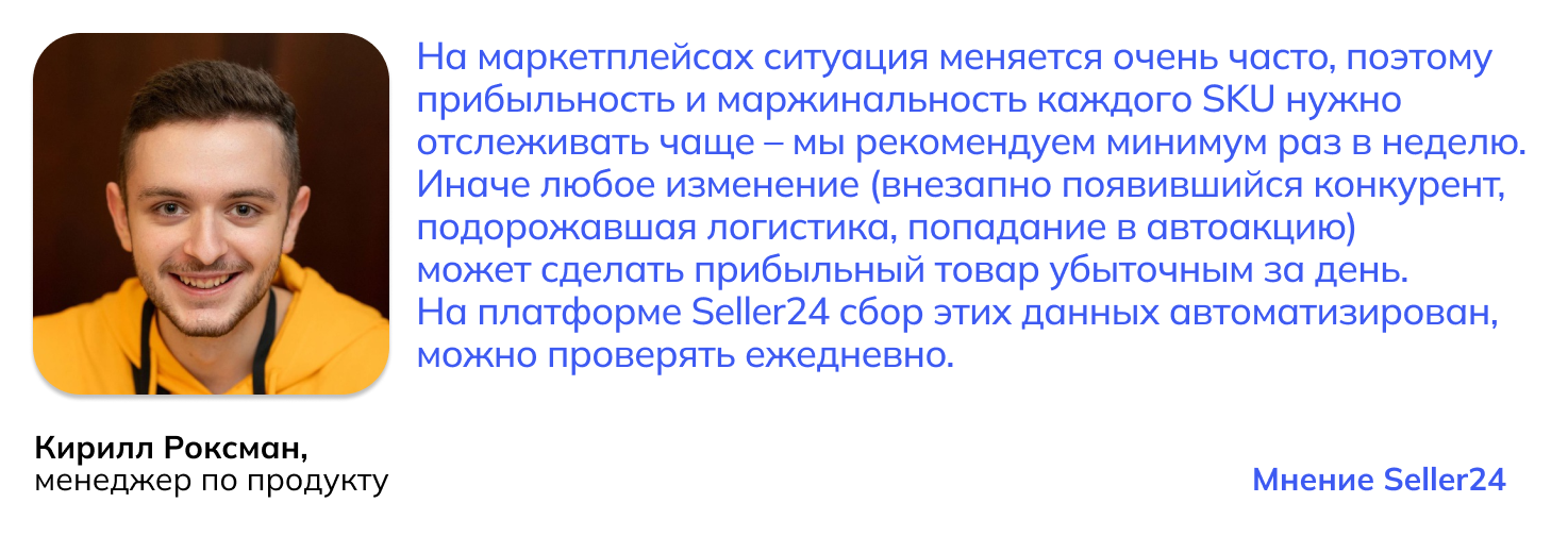 Отслеживаем изменения выручки и прибыли от месяца к месяцу по каждому SKU с помощью таблиц и калькулятора маржинальной прибыли.