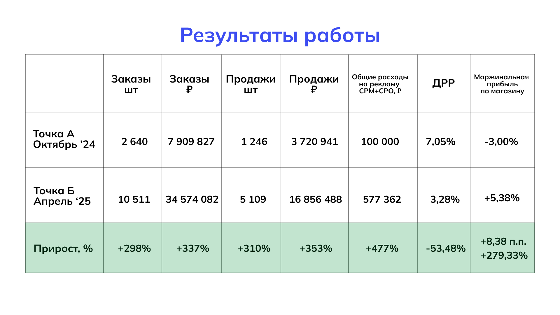 Результаты: рост продаж в 4,5 раза благодаря системной работе